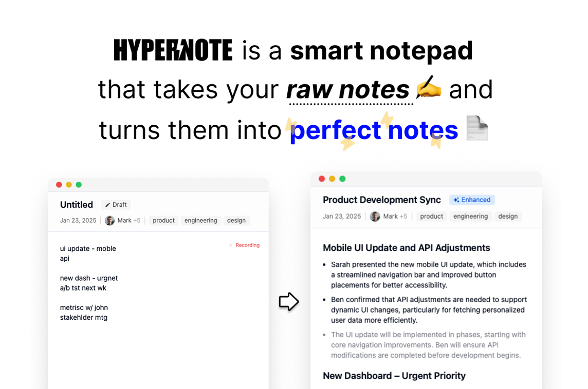 Hyprnote is made for people packed with meetings. It's a smart notepad that takes your raw note and turns them into a perfect meeting note."