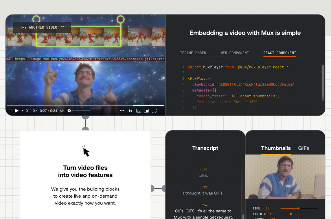 "Mux Video is an API-first platform, powered by data and designed by video experts to make beautiful video possible for every development team.