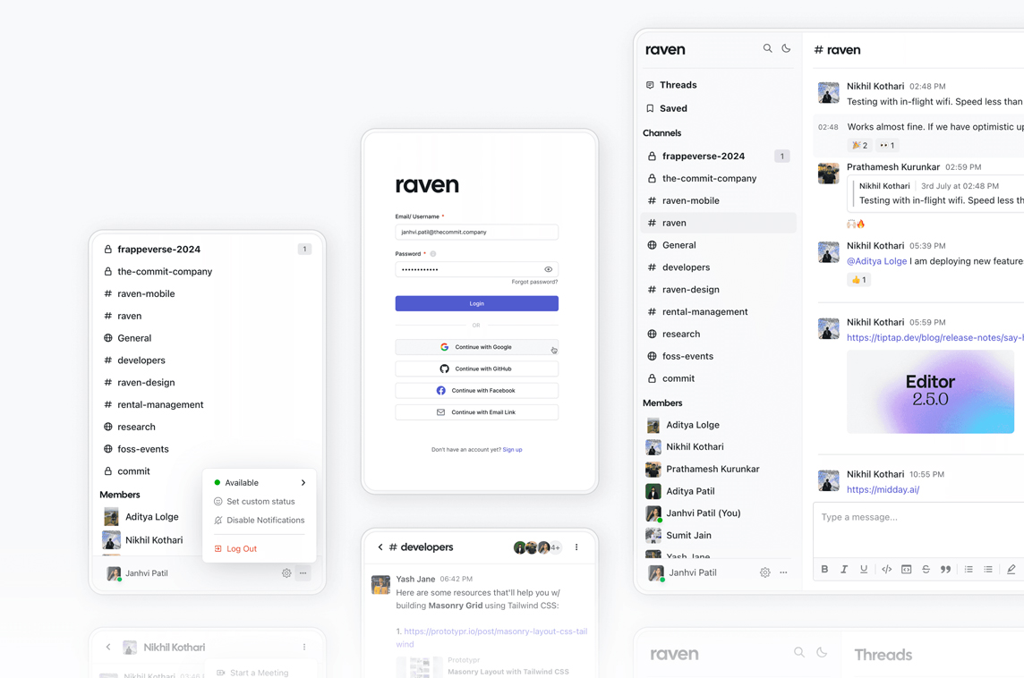 "Raven is a simple work messaging tool that is built using the Frappe framework and can be installed on any new or existing Frappe site (e.g. in addition to ERPNext or Gameplan).