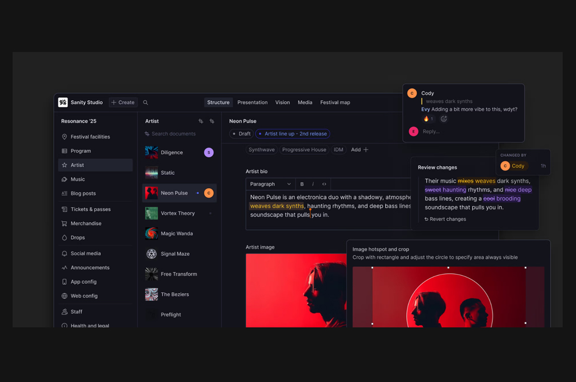 The Sanity Studio is an open-source CMS built with React.js. It ships as an open-source single page application and offers rapid configuration and free form customization."