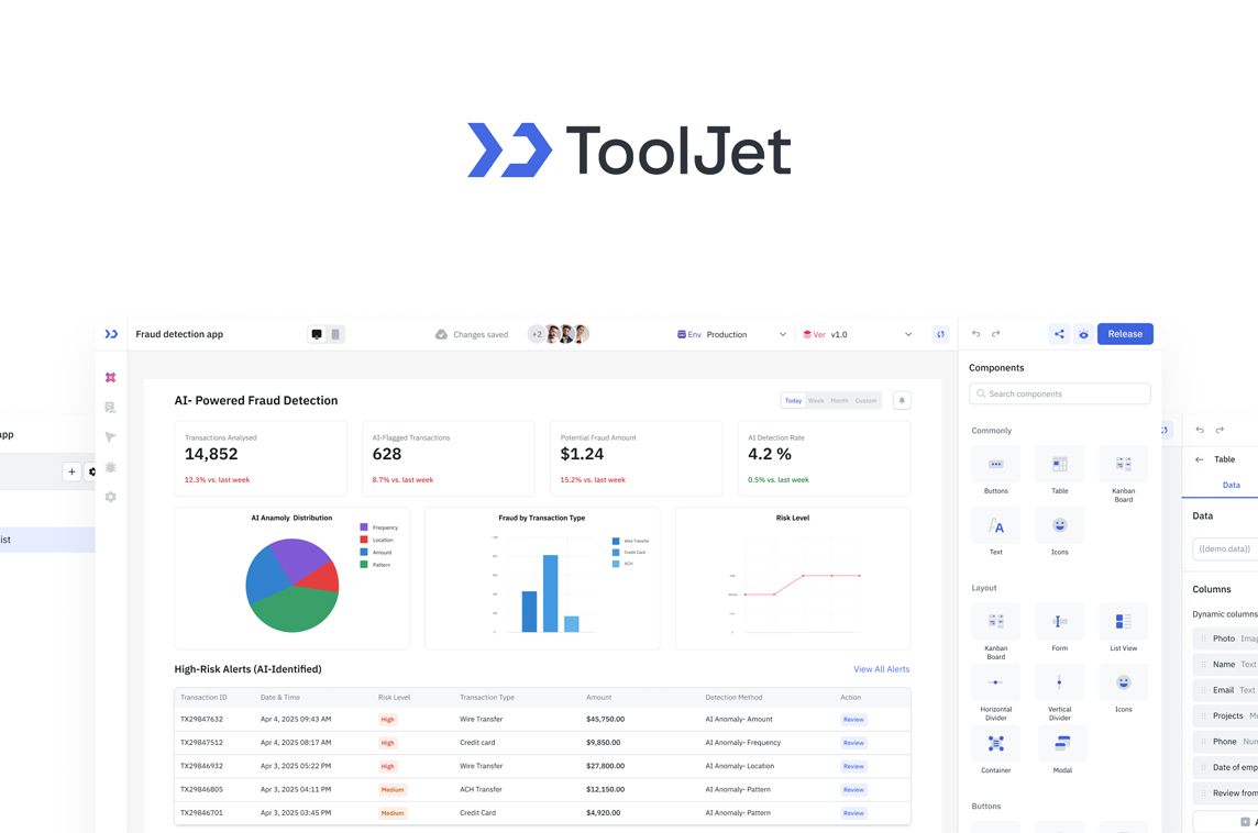 "ToolJet is the open-source foundation of ToolJet AI - the AI-native platform for building and deploying internal tools, workflows and AI agents.