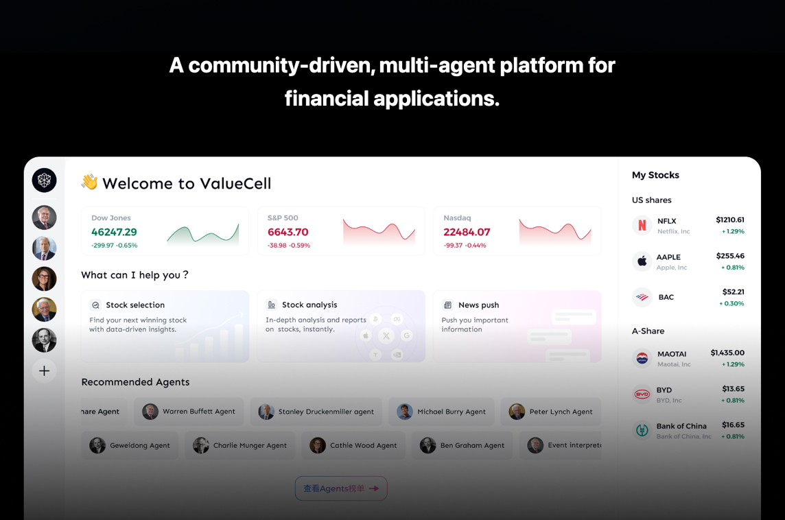 "ValueCell is an open-source multi-agent platform for financial applications.