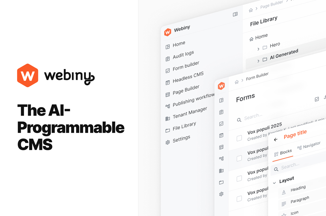 "Webiny is an open-source, self-hosted content platform that combines ready-made apps (like Headless CMS, Website Builder, File Manager/DAM, Publishing Workflows, and Tenant Manager) with a TypeScript framework and APIs you can extend. You get SaaS-like reliability on a serverless foundation — but deployed into your cloud, under your governance.